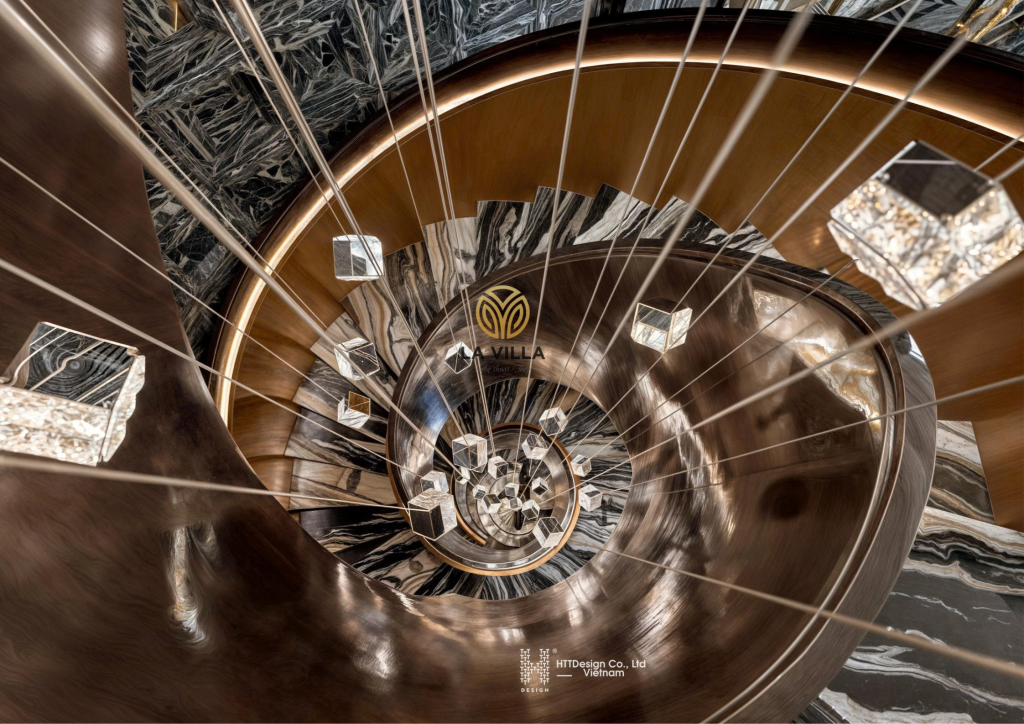 Công trình đã hoàn thành. Kiểu mẫu cầu thang trở thành xu hướng, giúp ngôi nhà trở nên uyển chuyển mềm mại.